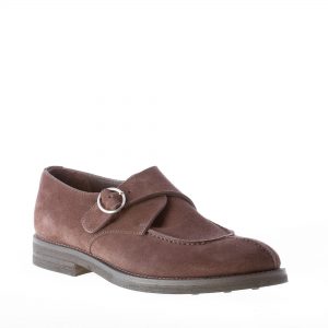 MIGLIORE uomo scarpa derby apron toe con fibbia in camoscio TESTA DI MORO