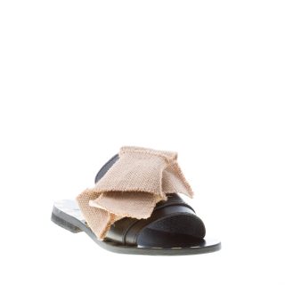 TIPI E TACCHI sandalo ciabatta bassa in pelle NERO con maxi fiocco in canvas tortora