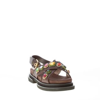 MARIA CRISTINA donna sandalo platform in pelle MARRONE CACAO con pietre. Tacco 3 cm