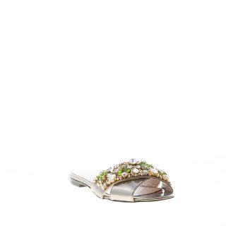 MARIA CRISTINA donna ciabatta piatta in pelle a specchio PIOMBO con pietre