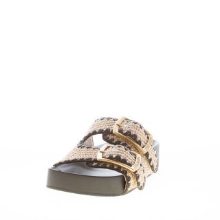 STEVE MADDEN donna sandalo ciabatta On Deck in rafia NATURALE e NERO con fibbie