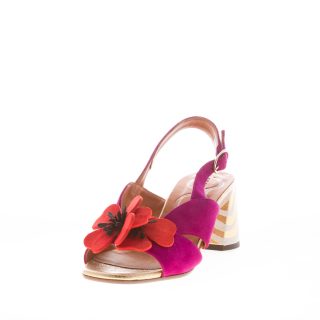 CHIE MIHARA donna sandalo Rutina46 in camoscio PRUGNA con fiore. Tacco 6,5 cm