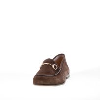MILLE885 uomo mocassino Lipari in camoscio TESTA DI MORO con morsetto. Suola in cuoio