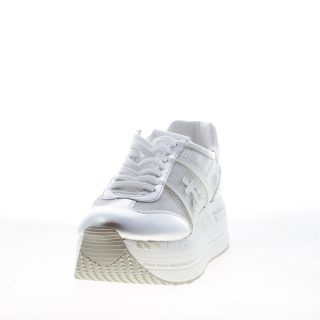 PREMIATA donna sneaker BELLE 6552 in pelle BIANCO con talloncino argento e lacci colorati