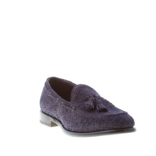 ORTIGNI uomo mocassino Goodyear in camoscio intrecciato BLU con nappine