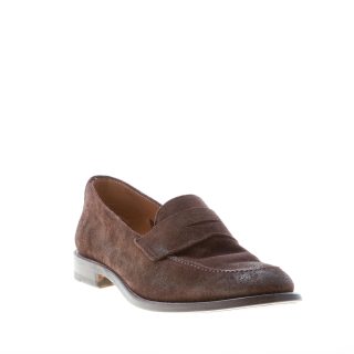 MIGLIORE uomo mocassino penny in camoscio anticato MARRONE