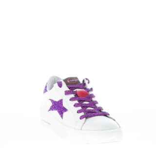 OKINAWA donna sneaker LOW PLUS 2325 in pelle BIANCO con glitter viola