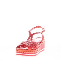 PONS QUINTANA (Mariacristina) donna sandalo Milan in pelle intrecciata ARANCIONE. Zeppa 4 cm