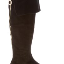 ROBERTO FESTA donna stivale sopra il ginocchio Salt in camoscio NERO con zip oro. Tacco piatto