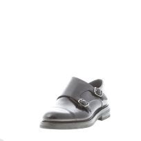 JEROLD WILTON uomo scarpa con doppia fibbia in pelle spazzolata NERO. Suola gomma