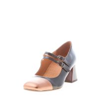 CHIE MIHARA donna scarpa bebè Volcano in pelle laminata NERO più bronzo. Tacco 5,5 cm