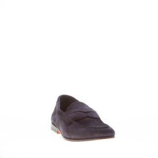 SANTONI uomo mocassino classico Goodyear in camoscio BLU NOTTE con mascherina. Suola cuoio