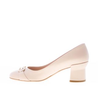 Petalo pale pink soft leather Otilia 55 pump with a round toe and the iconic pale gold metal Gancini adornment. Leather sole. Heel 5,5 cm