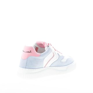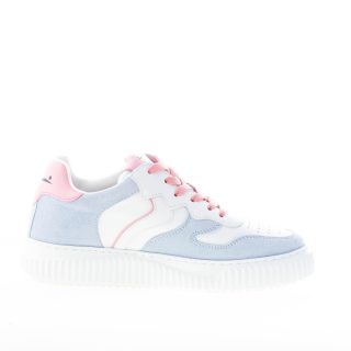 VOILE BLANCHE donna sneaker Laura in pelle BIANCO e camoscio celeste