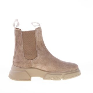 Stivaletto elasticizzato Tanky Beat in camoscio grigio. Inserti elasticizzati ai lati e doppio pull-up brandizzato. Suola in gomma