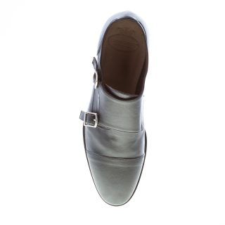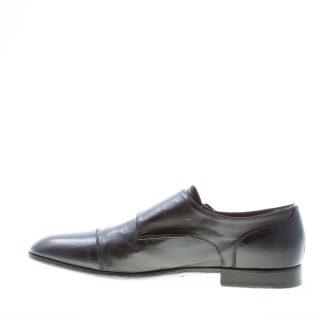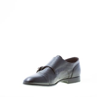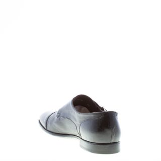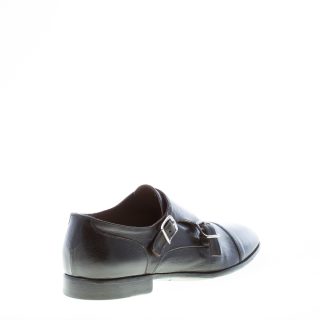 Schuh mit doppelter Schnalle aus schwarzem Leder. Leicht schmal zulaufende Spitze und Cap-Toe-Naht. Handgefertigt in Italien. Ledersohle