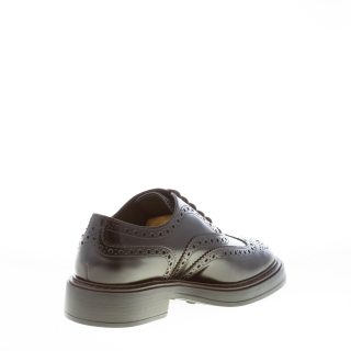 Oxford-Schuh von Tod’s aus edlem, halbglänzendem schwarzem Leder mit gebürstetem Finish und klassischem Wingtip-Brogue-Lochmuster. Sichtbar vernähter Lederrahmen und geprägtes Tod’s-Monogramm. Gummisohle mit geprägten Noppen.