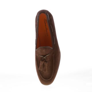 SANTONI Herren Mokassin aus Veloursleder „Delavé“ BRAUN mit Penny-Riemen. Ledersohle.
