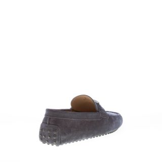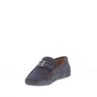 Timeless Driver-Mokassin aus nachtblauem Veloursleder mit Penny-Steg, gebrandetem T-Monogramm aus Metall und serigrafiertem Grosgrain-Einsatz. Sichtbare Nähte in Relief. Ikonische Laufsohle mit charakteristischen Gummennoppen („Gommini“).