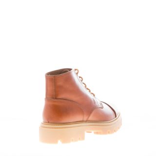 Schnürstiefelette aus edlem Glattleder in Dunkelbrandy-Braun mit geprägtem Tod’s Monogramm an der Seite und sichtbaren Nähten in Relief. Chunky-Gummisohle mit markantem Profil (Carrarmato-Detail).