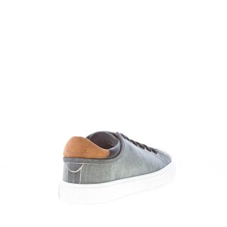 Grey canvas fabric Fit Easy sneaker with brown nubuck branded details at tongue and heel. Internal removable footbed. White „used effect“ contrasting rubber sole
