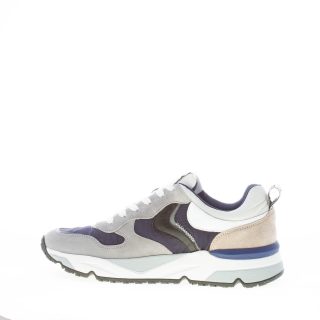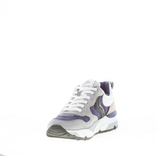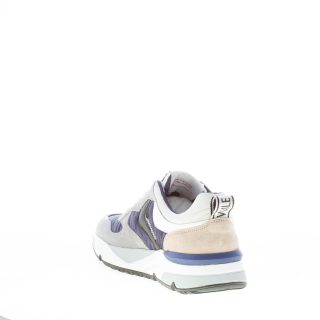 Sneaker Jhimmy realizzata in un mix di camoscio grigio e tessuto tecnico blu con inserti in pelle nera. Etichetta brand alla linguetta. Spoiler in gomma tridimensionale al tallone. Plantare interno removibile. Suola leggera in gomma a due tonalità
