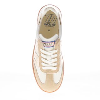 Cloud Metallic Gold sneaker made in soft white leather and beige suede with silver metallic leather logo 70 at side and back detail. Removable footbed of 1,5 cm. Rubber sole with a 2,5 cm height at the heel.