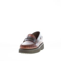 L’ARIANNA donna mocassino in crosta MARRONE CAFFE‘ con plateau. Tacco 8 cm