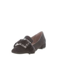 ROBERTO FESTA donna mocassino Felisa in camoscio NERO con fibbia pietre e pelliccia. Tacco 2 cm