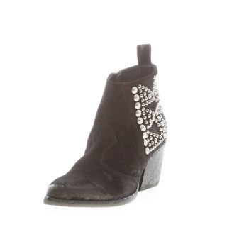 ELENA IACHI donna tronchetto texano in camoscio vintage NERO con hardware argento. Tacco 7 cm