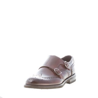JEROLD WILTON uomo scarpa con doppia fibbia in pelle vintage MARRONE. Suola gomma