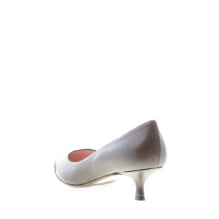 Black napa leather pointy toe pump with a decorative silver metal finish at the point. Kitty heel 4 cm. Leather sole with anti-slippering rubber insert