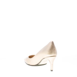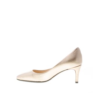 Gold hammered leather pump with a pointy toe. Made in Italy. Leather sole with a rubber antislippering insert. Heel 6 cm