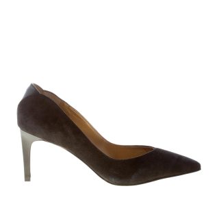 Decolleté Orella realizzato in camoscio nero con punta sfilata. Suola in cuoio. Tacco 8 cm