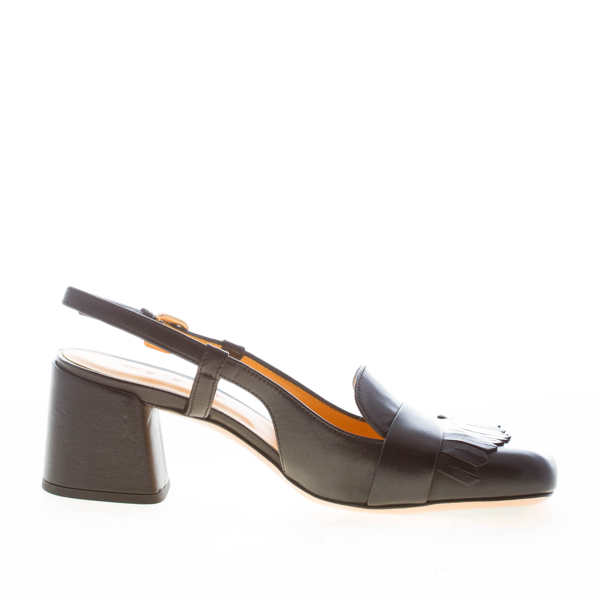 MARA BINI donna scarpa slingback Tania in pelle NERO con frangia. Tacco 5,5 cm