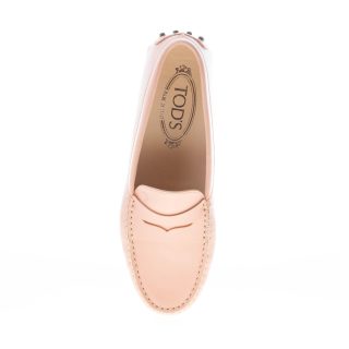Iconico mocassino Gommino realizzato in pregiata pelle rosa cipria con la classica mascherina penny. Impunture a vista realizzate a mano. Monogramma Tod’s impresso. Iconica suola con gommini