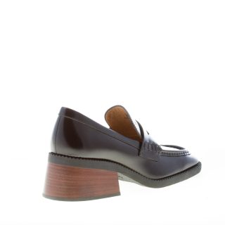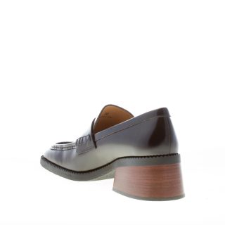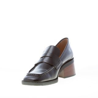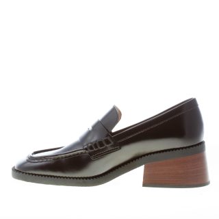 Black smooth leather Tod’s heeled loafer with a front classic penny bar and a squared toe. Exposed handmade stitchings and stamped Tod’s monogram. Serrated welt. Rubber sole. Leather block heel 2,2 ins
