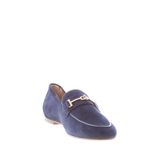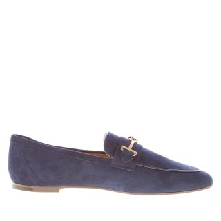 TOD’S donna mocassino in camoscio BLU GALASSIA con morsetto T-Ring. Suola cuoio