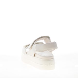 Sandalo H680 in morbida pelle yogurt con doppia fascia con chiusura a strappo sul piede. Chiusura posteriore al tallone con cinturino a strappo. Suola platform in gomma con altezza al tacco di 4,5 cm