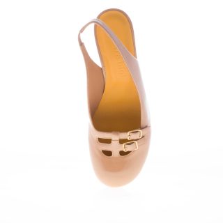 Scarpa slingback modello realizzata in pelle verniciata beige scuro mousse con doppio mini-cinturino e fibbiette sulla punta tonda. Chiusura slingback con cinturino elasticizzato. Suola in cuoio con inserto antiscivolo. Tacco 3,5 cm