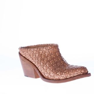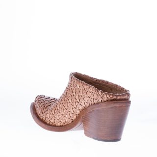 Natural brown knotted leather mule slide. Leather sole. Heel 7,5 cm
