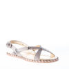 Sandalo basso a fasce incrociate in pelle stampa pitone roccia. Chiusura con fibbia regolabile laterale. Suola in gomma