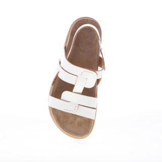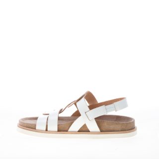 Sandalo Gems realizzato in pelle con taglio a vivo in vernice bianca e dotato di un sottopiede fasciato in crosta naturale. Chiusura con cinturino elasticizzato al tallone. Suola in gomma. Altezza circa 3 cm
