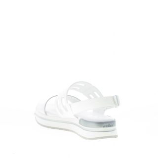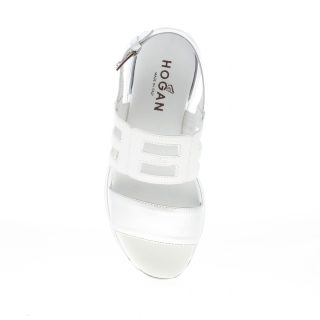 HOGAN donna H257 sandalo a fasce intagliate in pelle BIANCO più argento. Zeppa di 3,5 cm