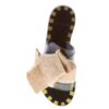 Slide sandal with a black leather large open toe band decorated with a maxi natural-tone canvas bow. Heel 1 cm. Leather sole