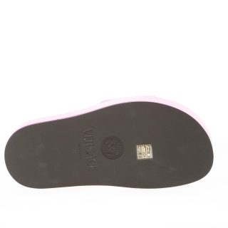 Sandalo zeppa platform slide realizzato in satin colore rosa con fascia e l’iconico emblema gioiello Medusa ’95 oro. Zeppa platform di 6 cm