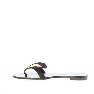 Black suede 2.0 Cruel thong sandal with the iconic golden metal Cruel appliquè. Heel 1 cm. Leather sole