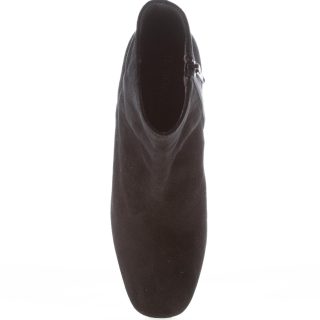 Stivaletto in camoscio nero con chiusura zip laterale. Suola in gomma. Tacco 5 cm con dettagli strass