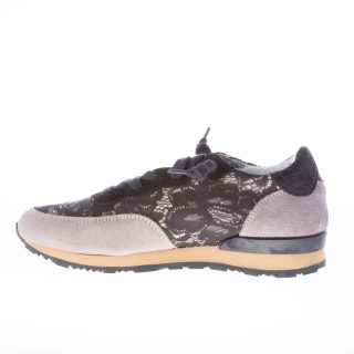Sneaker in camoscio grigio più pizzo nero. Rifiniture glitter.