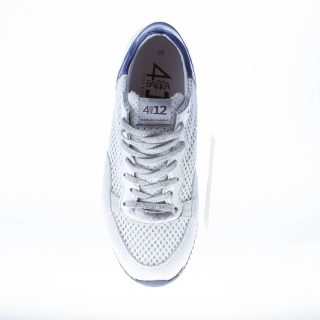 Sneakers in pelle argento con tessuto intrecciato bianco ed argento. Rifinitura in camoscio grigio chiaro